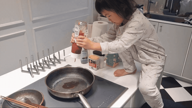 - 물 1컵 케찹, 돈가스소스류 각 4숟갈 정도