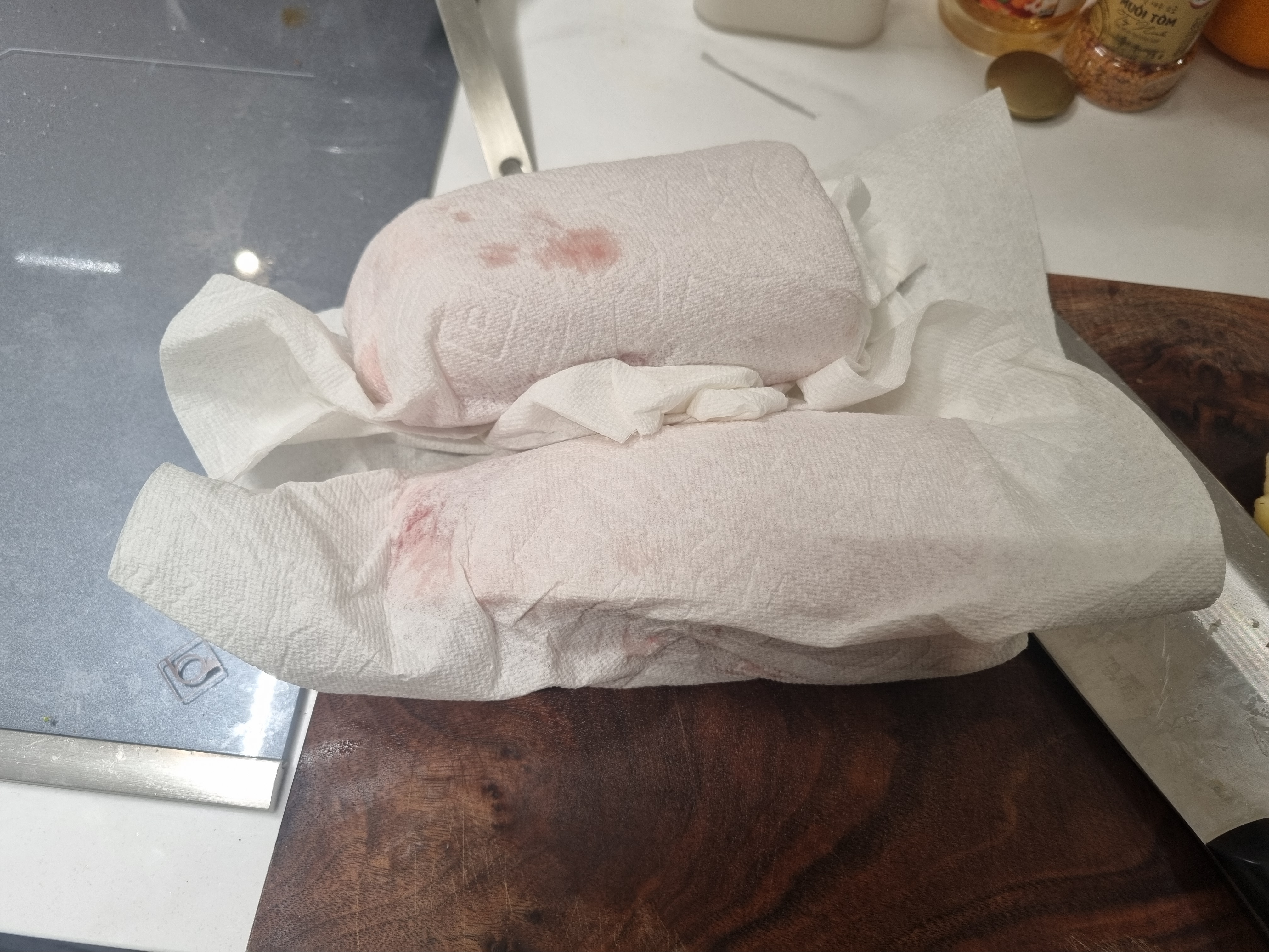 1. 삼겹살을 키친타올로 둘러 핏물 제거