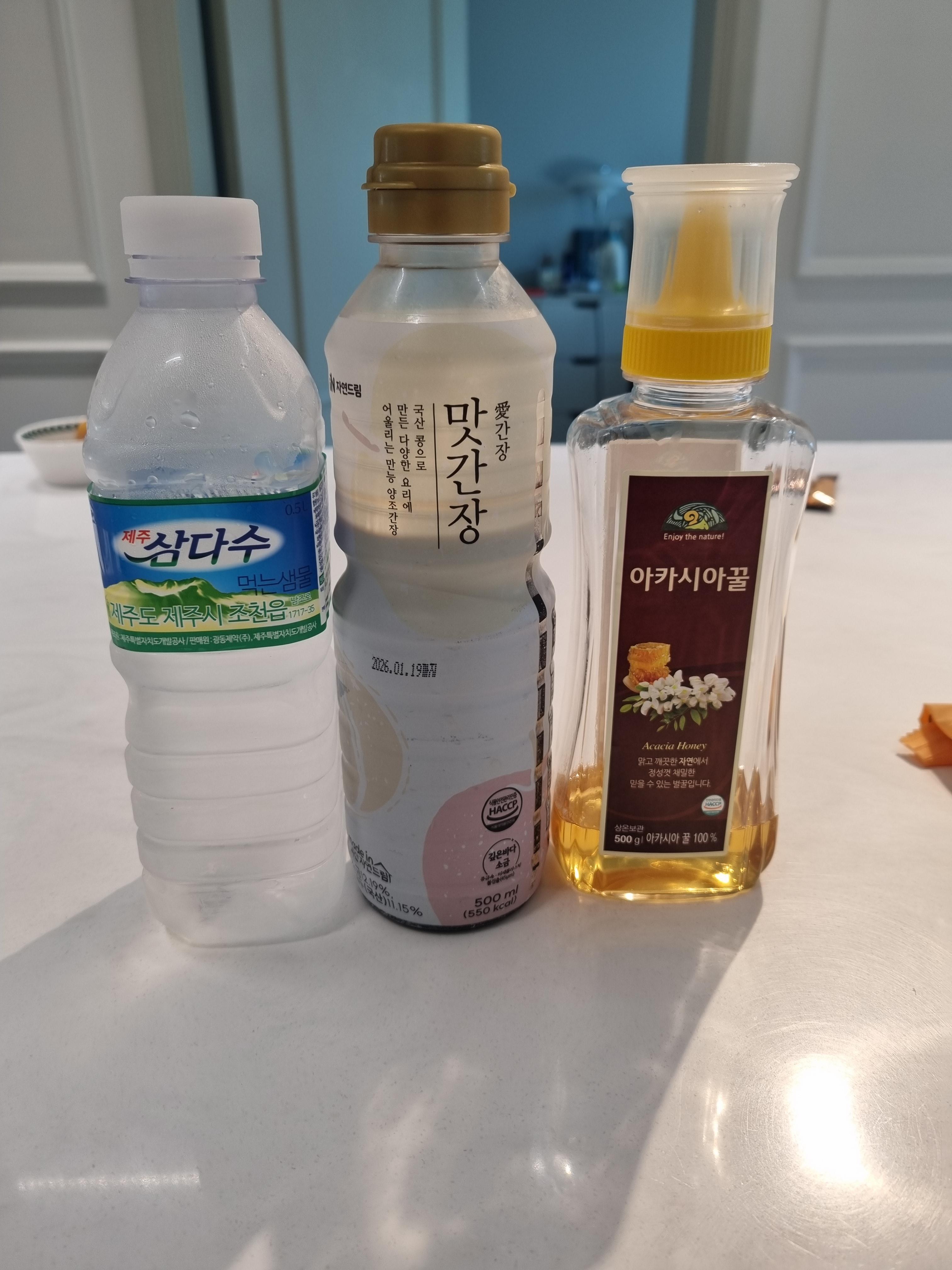 물3, 간장1, 꿀1의 비율로 혼합합니다.