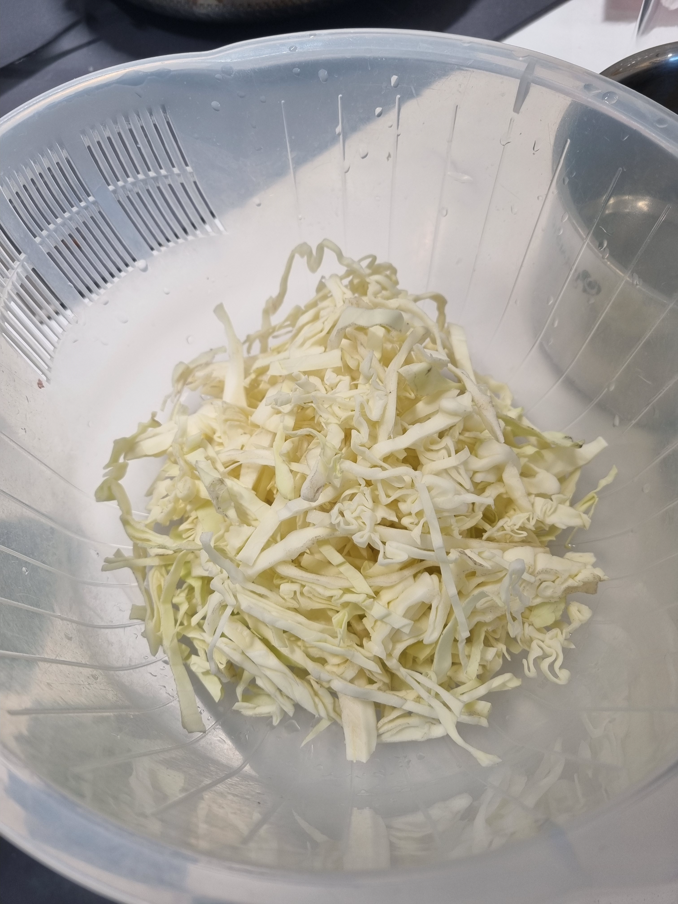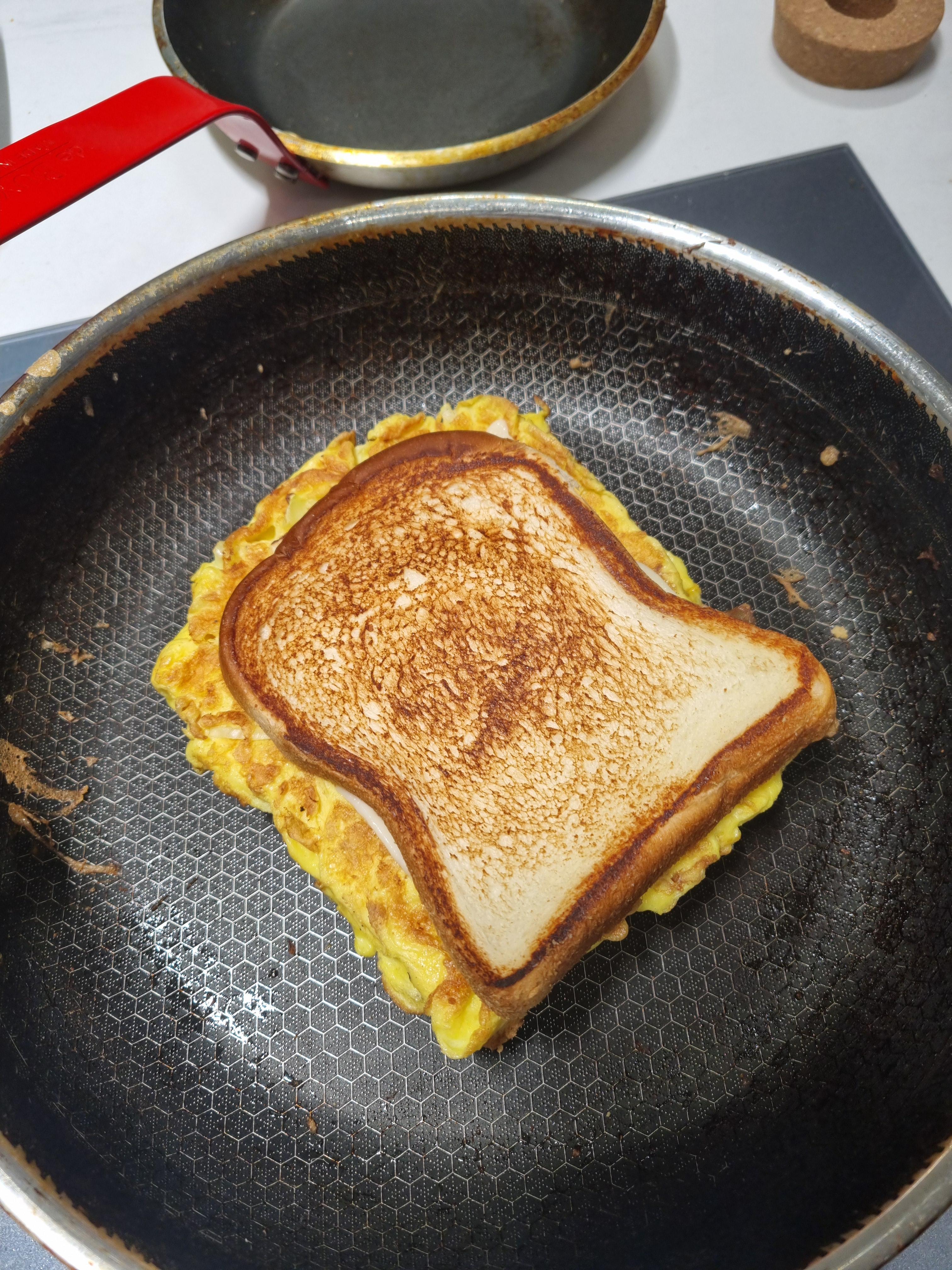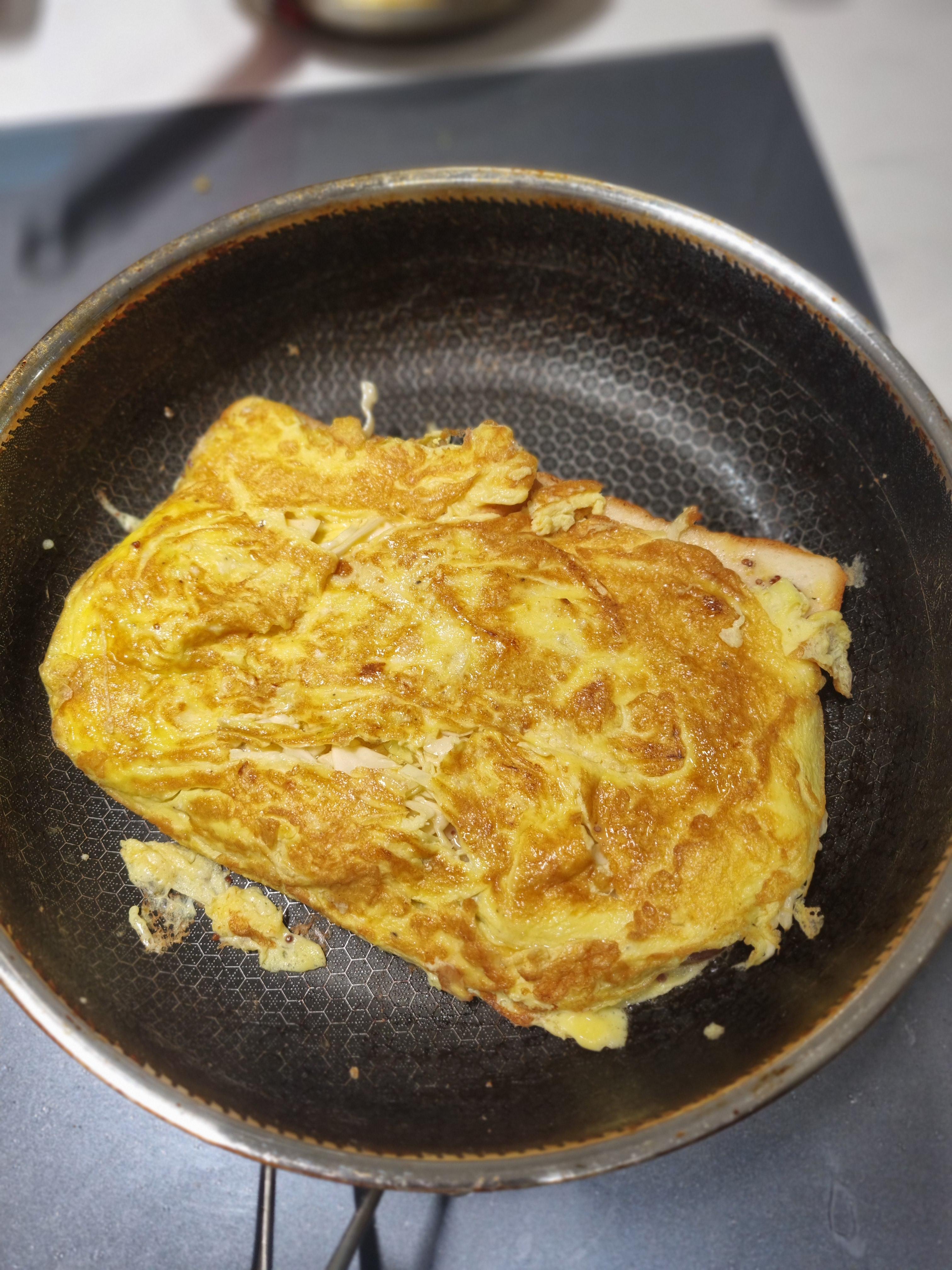 계란, 채썬 양배추, 식빵, 치즈 + α